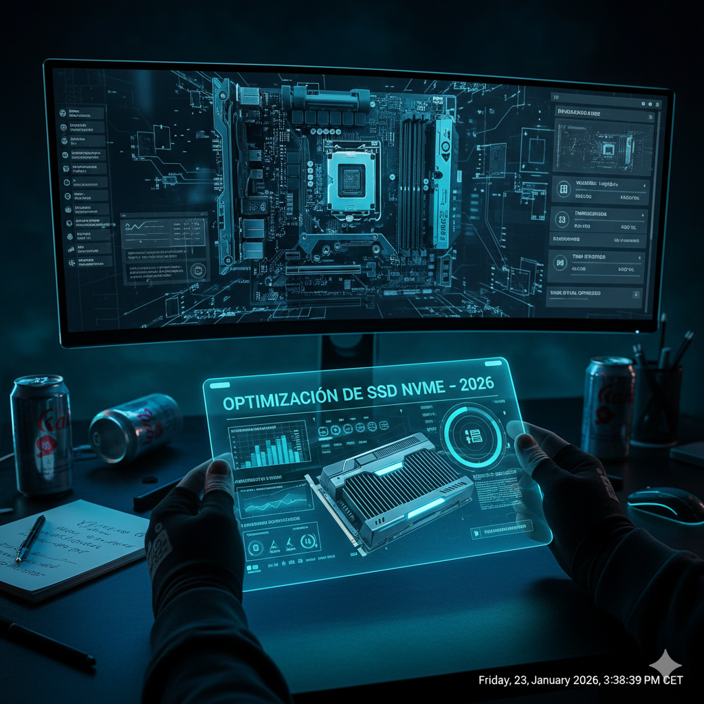 La optimización de SSD NVMe se ha convertido en un requisito técnico imprescindible en 2026, especialmente con la adopción masiva de unidades Gen5 y la transición progresiva hacia PCIe 6.0. Mantener el rendimiento máximo ya no depende solo del hardware, sino de una correcta configuración del sistema, el firmware y la gestión térmica. En esta guía abordo los factores reales que degradan la velocidad y cómo mitigarlos con criterios de ingeniería. El objetivo es claro: sostener IOPS altos y latencias bajas a lo largo del tiempo.